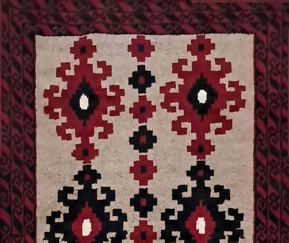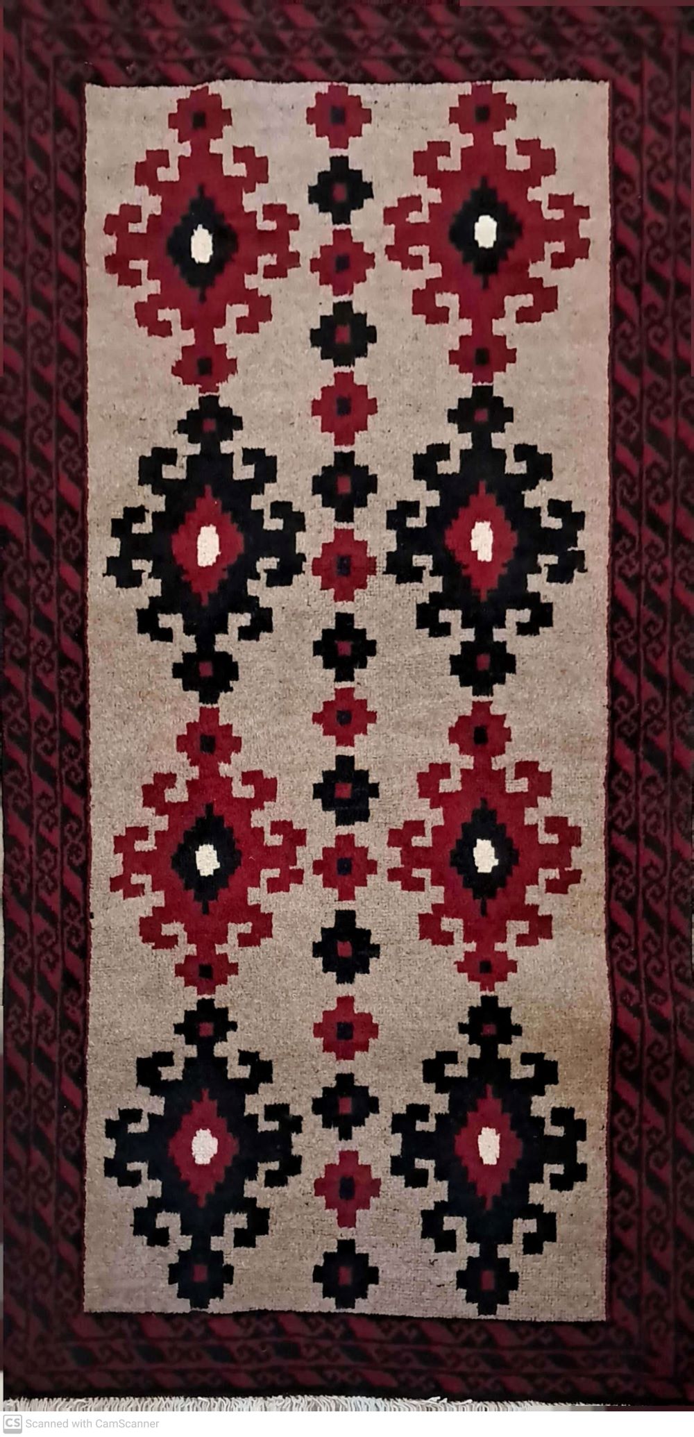 This Afghan Baluch Rug is crafted by skilled artisans in Baluch, Afghanistan, using hand-knotted construction with a wool pile and foundation. This rectangular rug features a central medallion pattern in classic geometric design, with a stunning color combination of blue, brown, and red. It will be a timeless and elegant addition to any room.